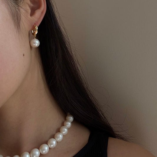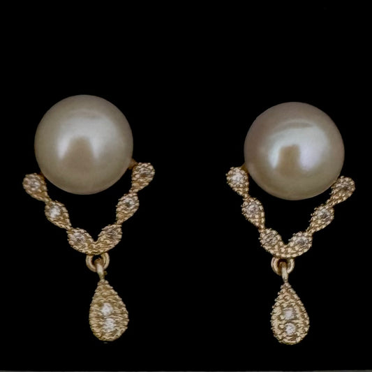 9-10mm Pearl Stud Earrings with Gold Dangle