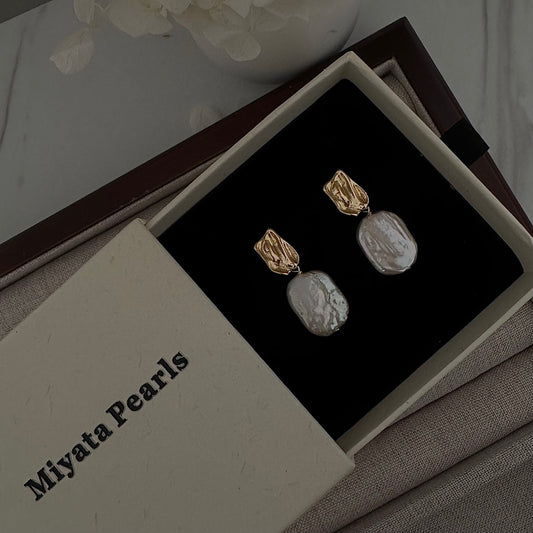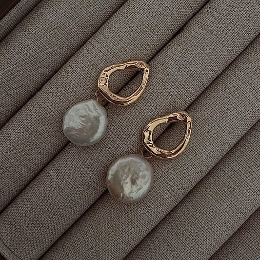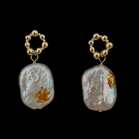 Baroque Coin Pearl Drop Earrings – Bold Irregular Gold Vermeil Hoops
