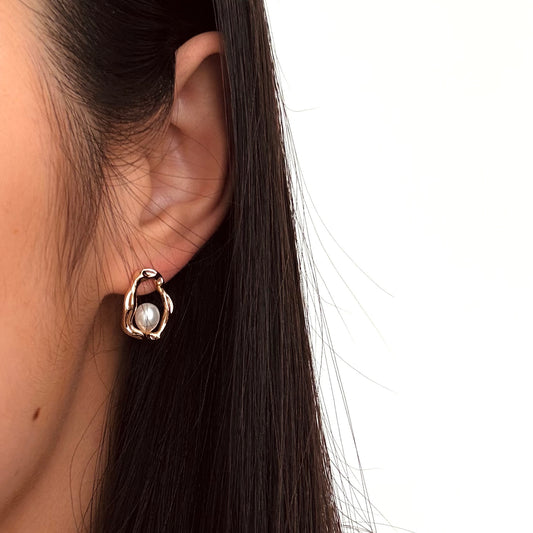 Elegant Dainty Baroque Pearl Earrings – Matte Gold Finish Drop Dangles
