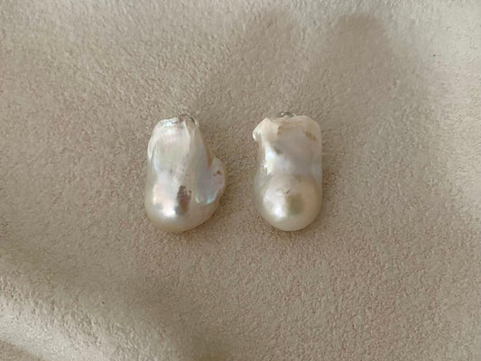 Large Baroque Pearl Stud Earrings – 925 Sterling Silver
