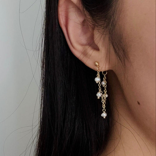 Natural Freshwater Pearl Drop Earrings – Multiple Pearls & Gold Long Dangles