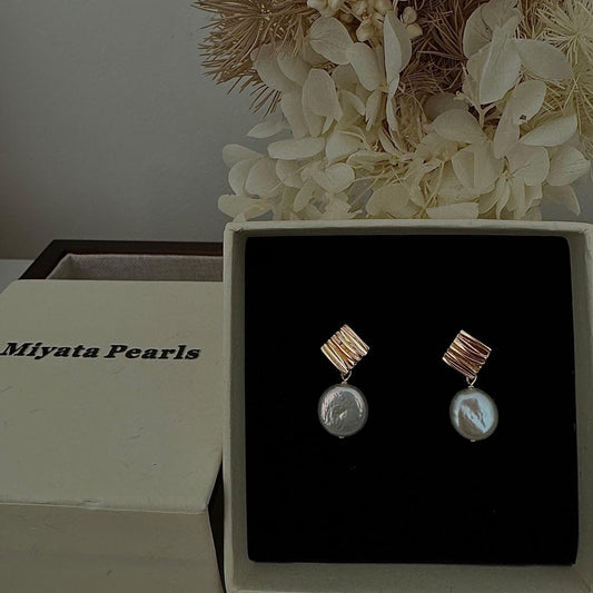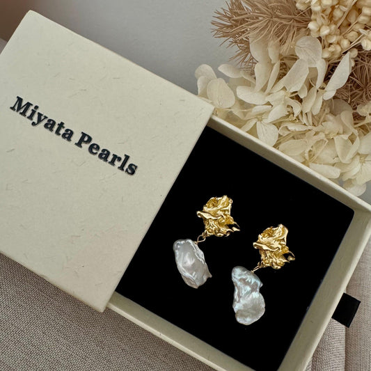 Wavy Stud Earrings with Large Keshi Pearl Drops