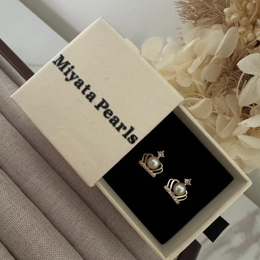 CZ Crown Pearl Stud Earrings
