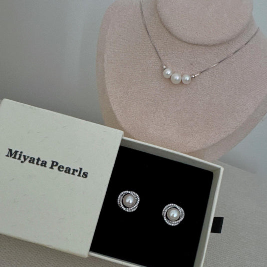 Pearl Stud Earrings with CZ Halo – Sterling Silver, Bridal Gift